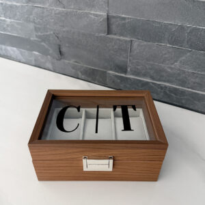 Personalisierter Uhrenkoffer für 6 Armbanduhren in Holz-Optik mit Wunschnamen