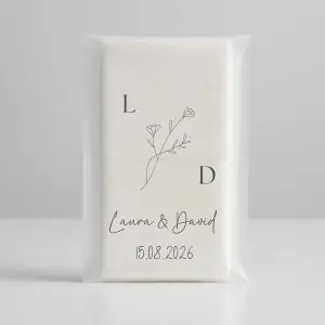 Mach deinen besonderen Tag noch unvergesslicher! Unsere personalisierten Seifenblasenröhrchen sind eine romantische und zugleich verspielte Ergänzung für deine Hochzeit, Taufe, Kommunion oder jeden anderen besonderen Anlass. Im Anschluss können die Hochzeitsgäste die Seifenblasen-Röhrchen als Andenken mit nach Hause nehmen.